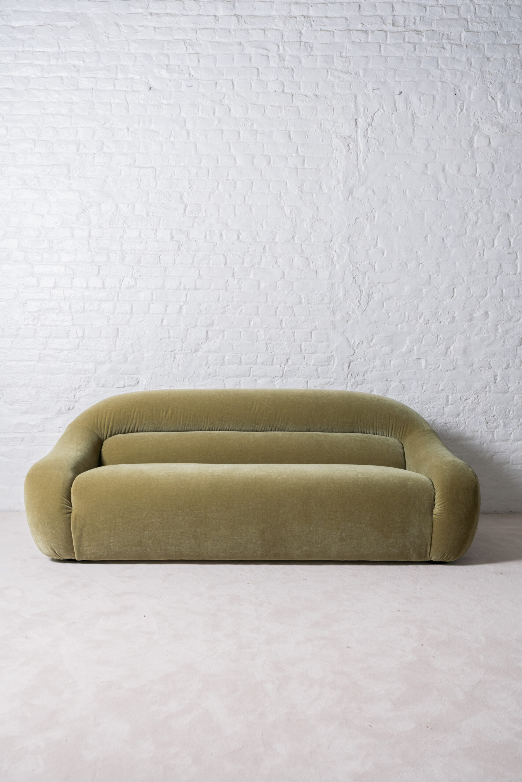 A velvet “Capriccio” sofa by George Bighinello for Eurosalotto – circa 1970. Recently reupholstered in mohair fabric.
